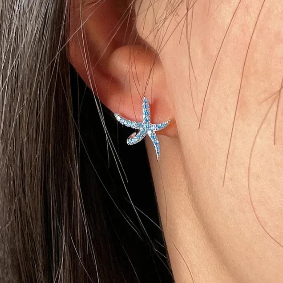 Ogni zircone azzurro riflette come un frammento d’acqua, e l’insieme crea un bagliore vivo, boho e marittimo, che accende il viso anche d’inverno.